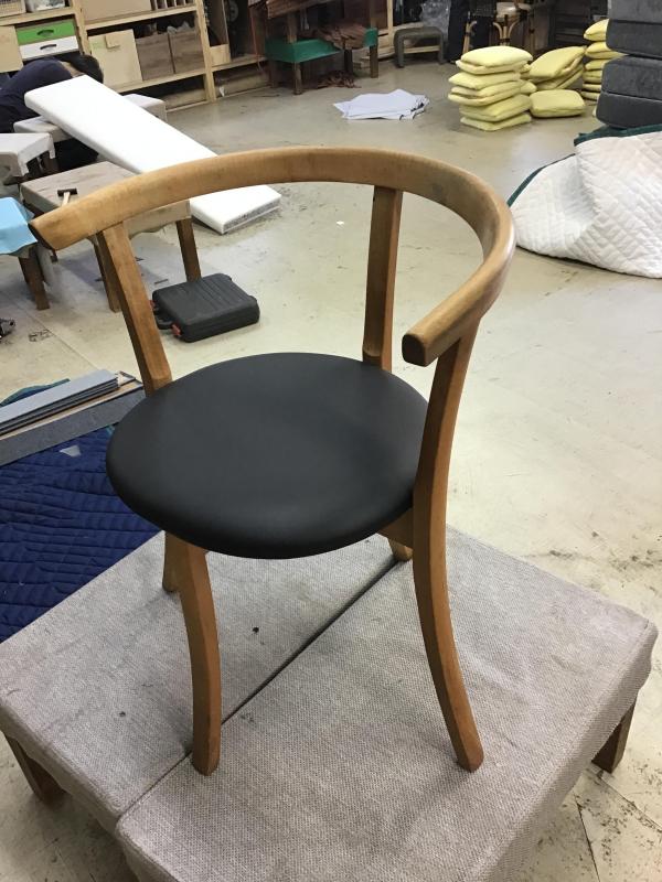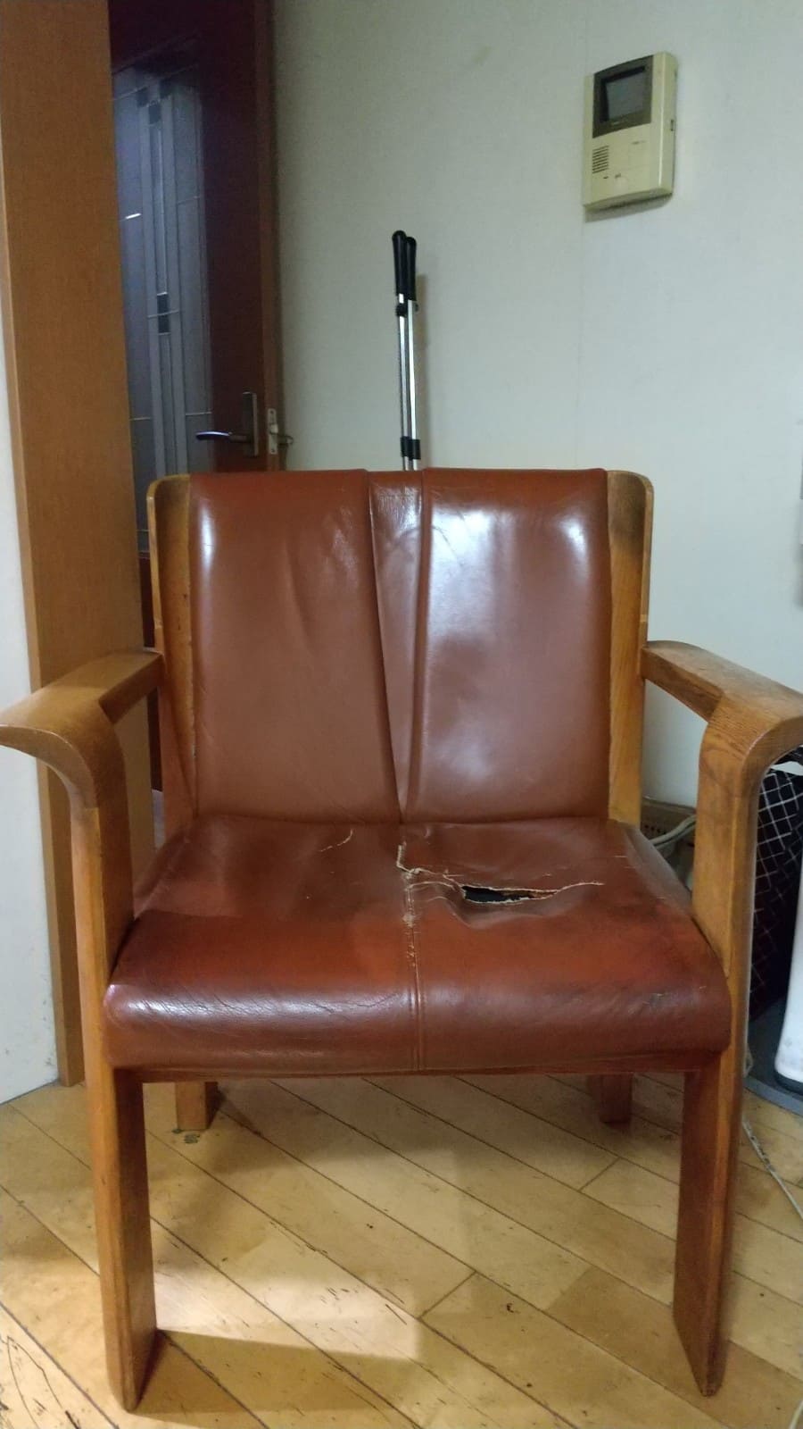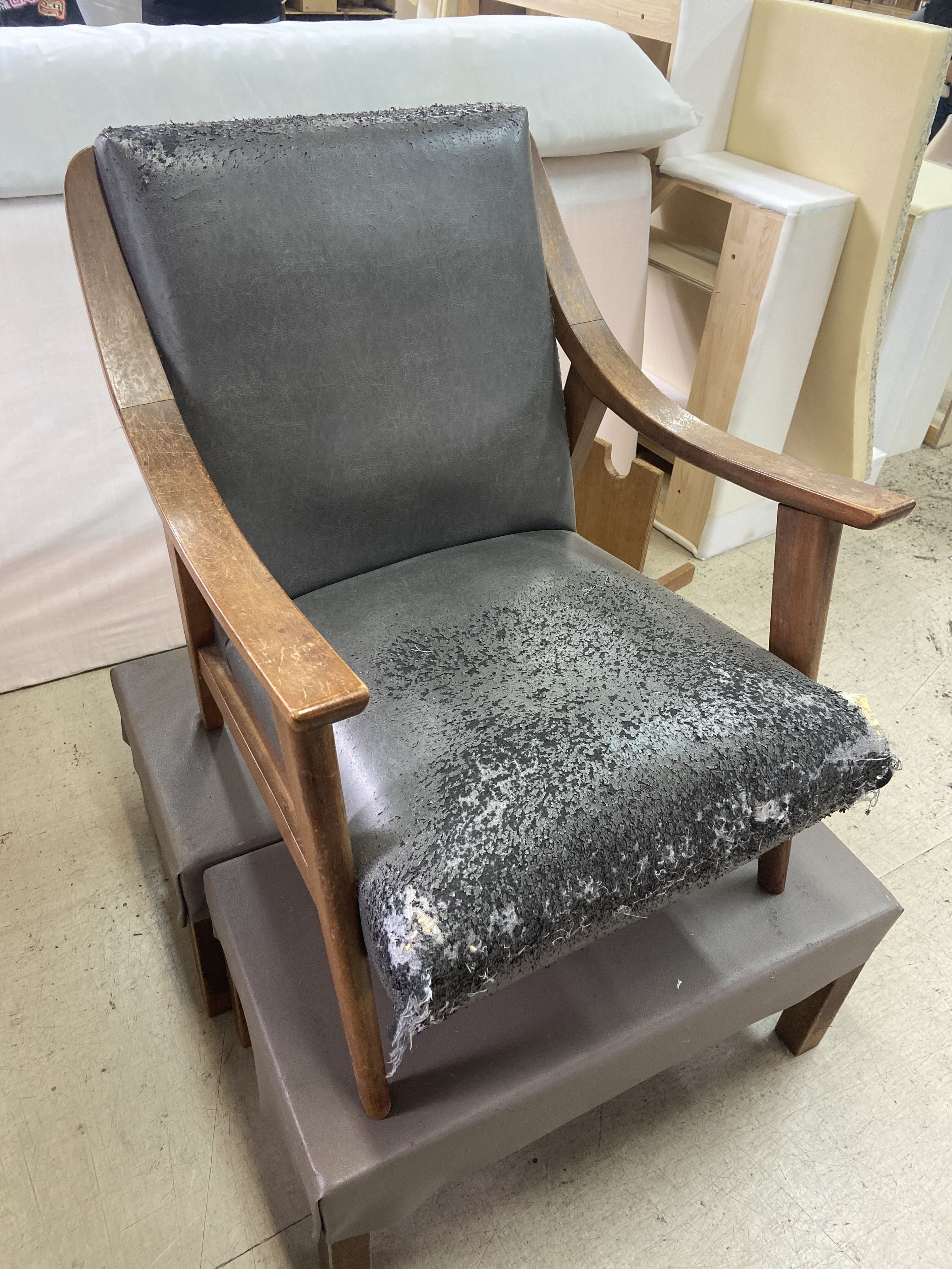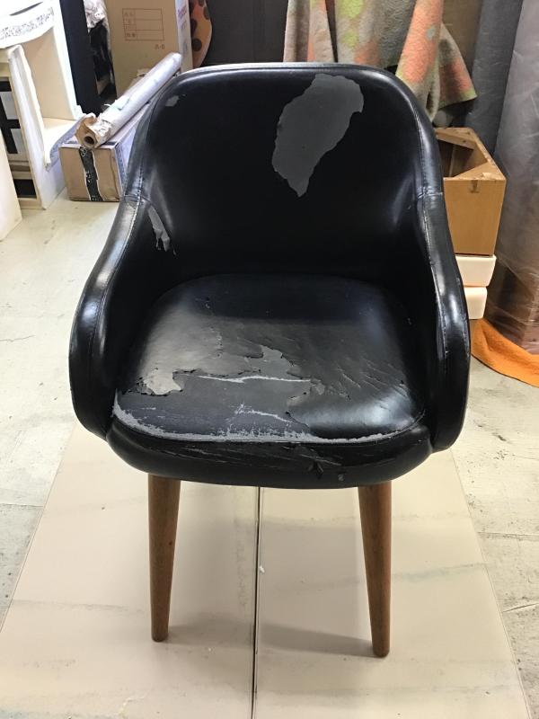 ダイイングチェアはウレタンの交換をし近似のビニルレザーで張替をしました