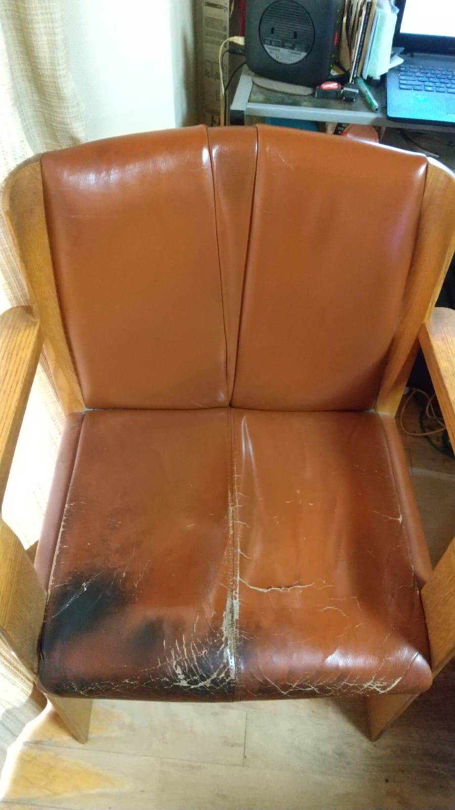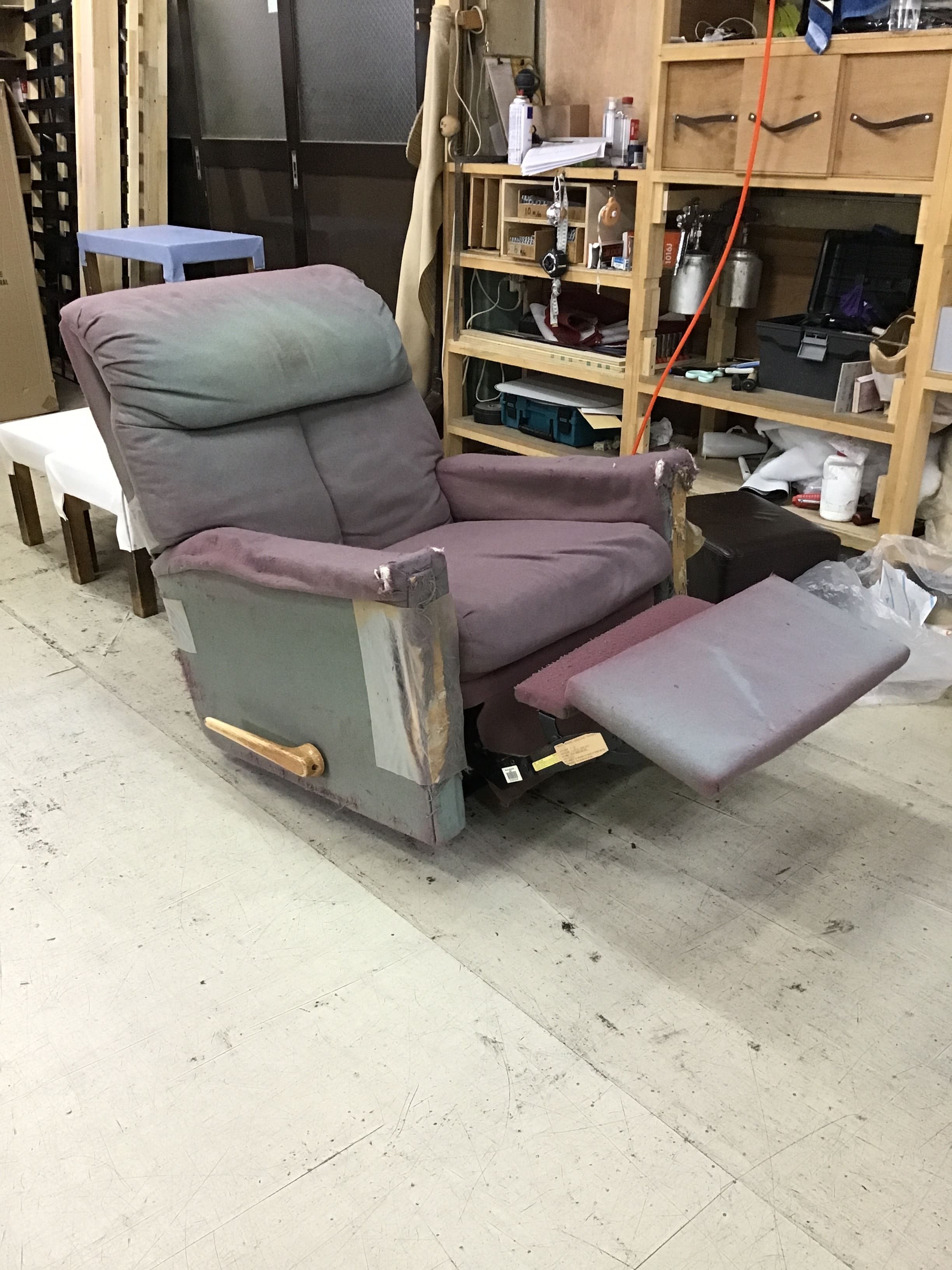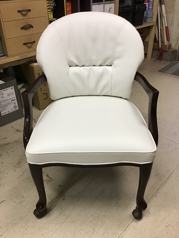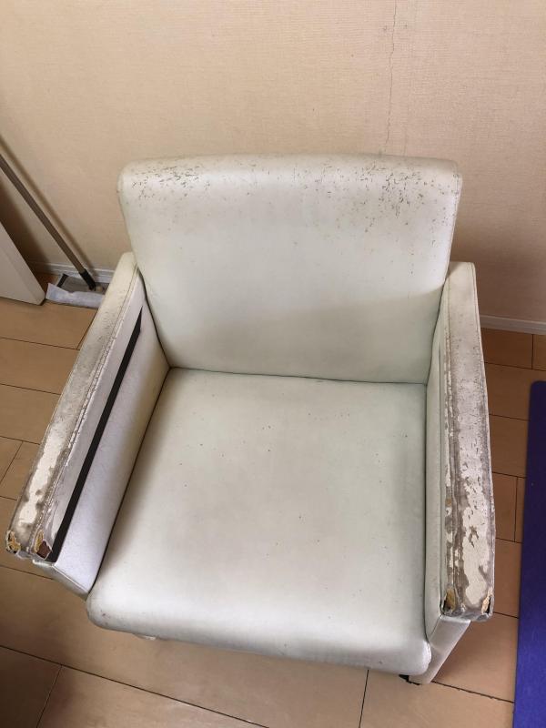 ダイイングチェアはウレタンの交換をし近似のビニルレザーで張替をしました