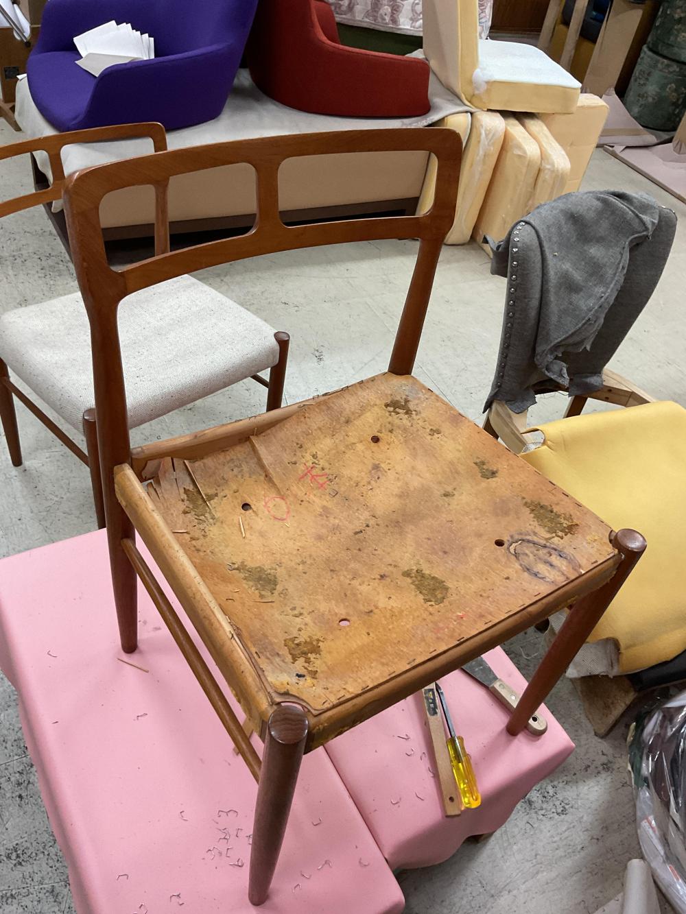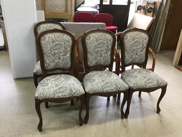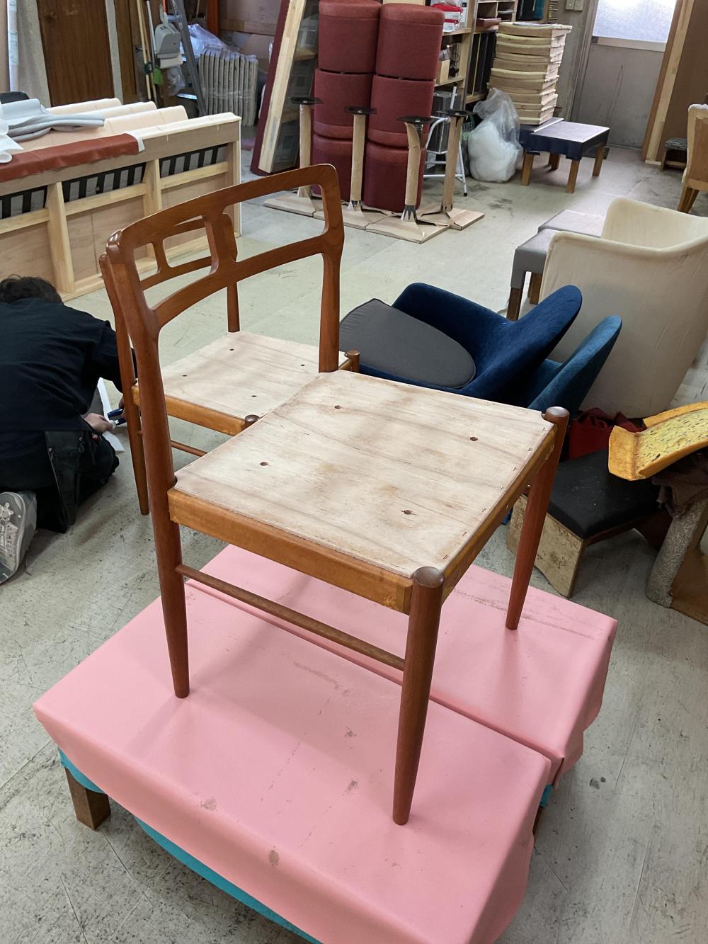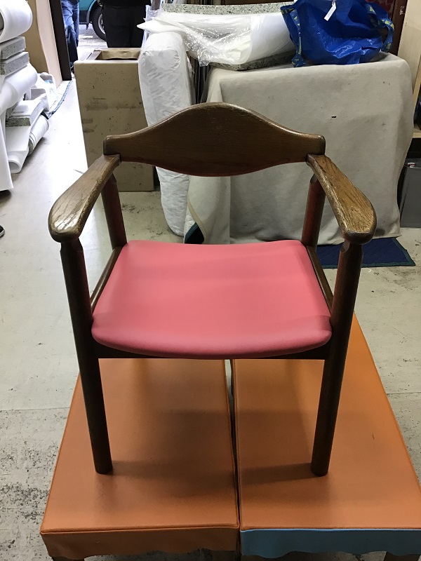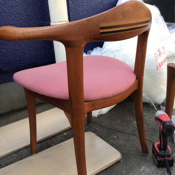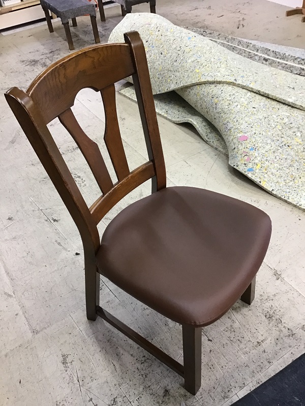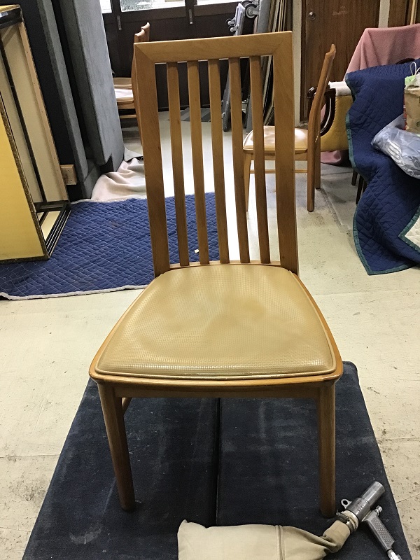 ダイニングチェアの張替と座面のウレタン交換をいたしました。