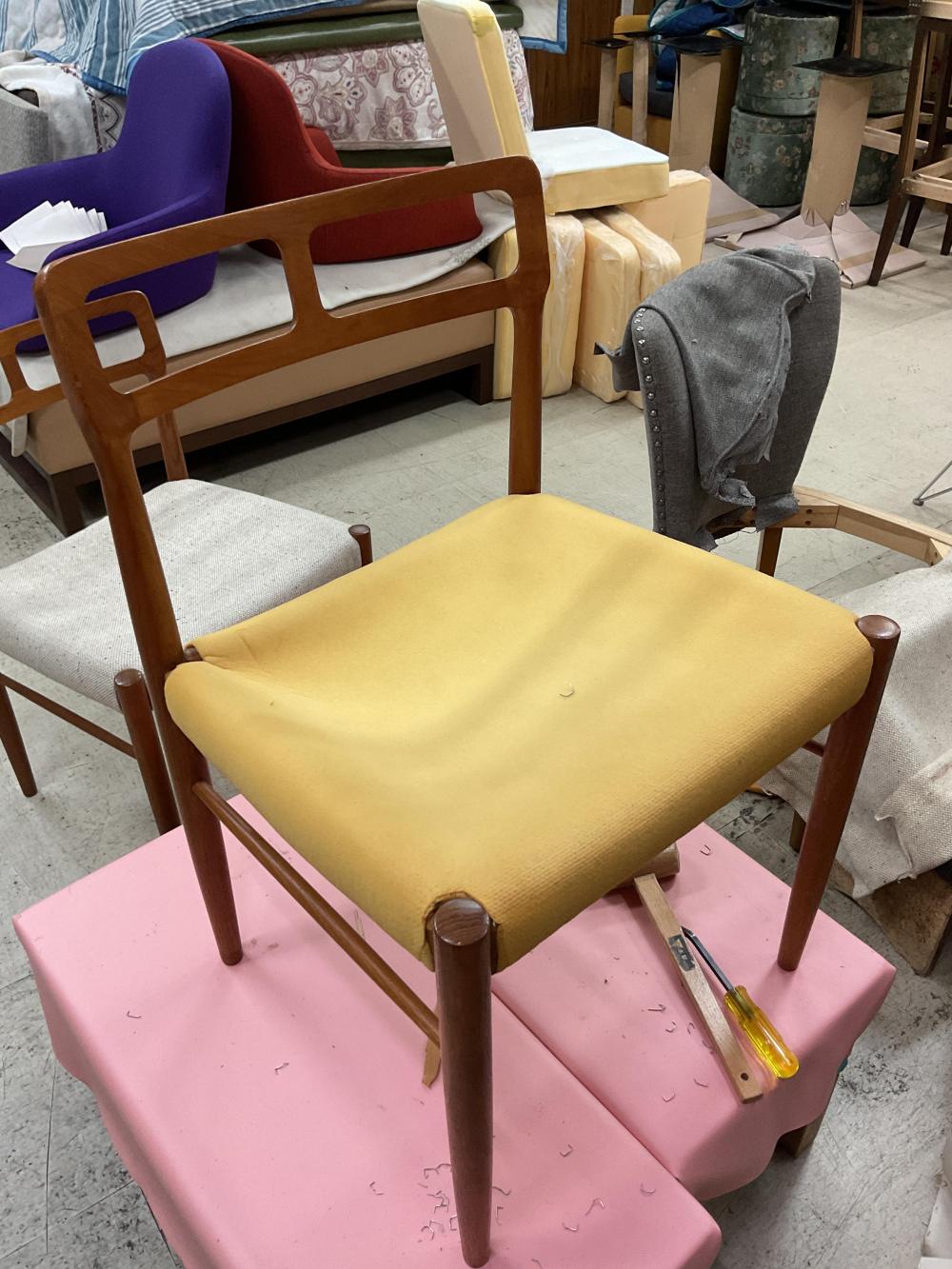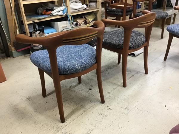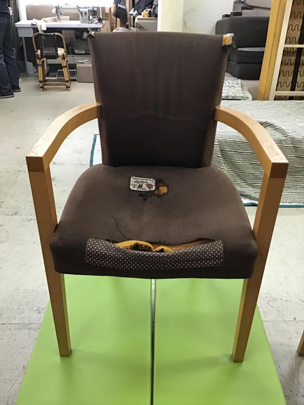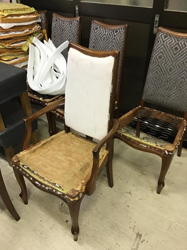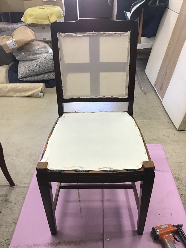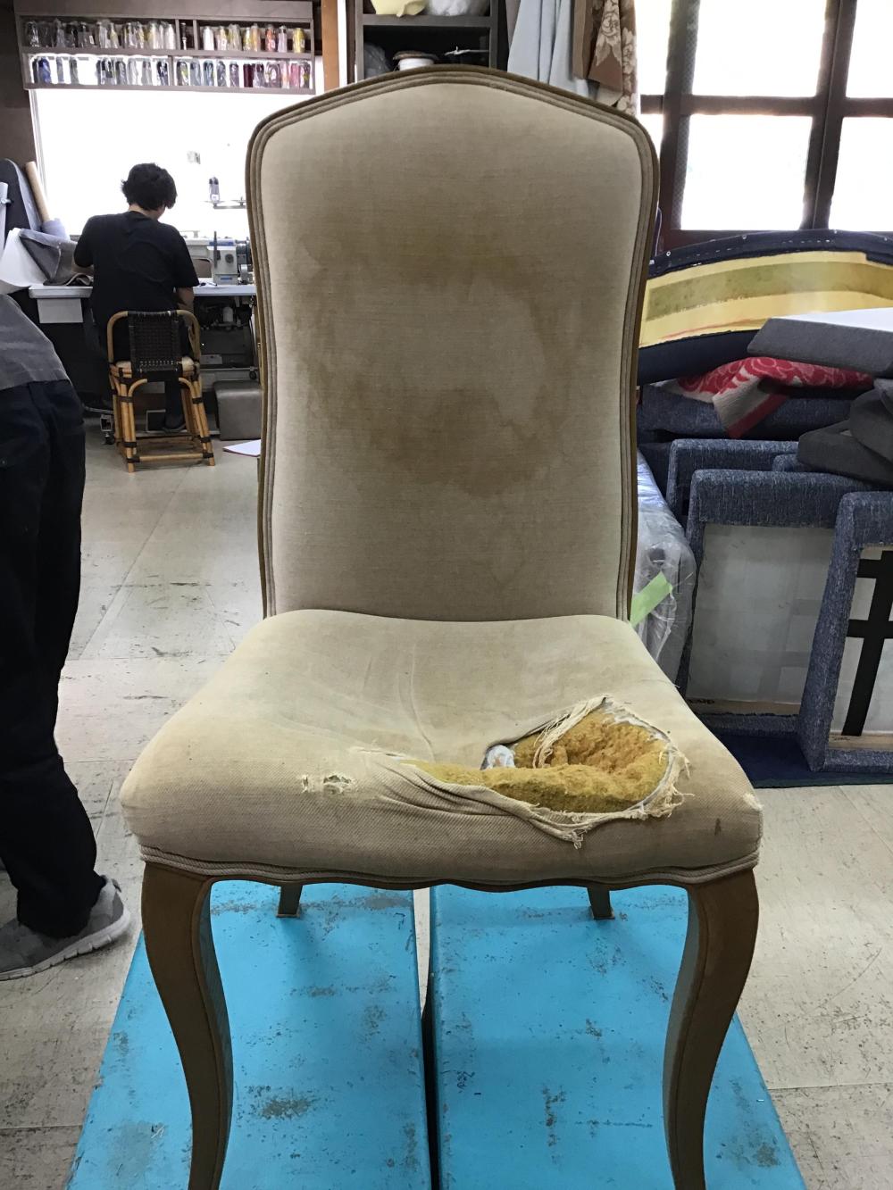 ダイニングチェアの張替と座面のウレタン交換をいたしました。