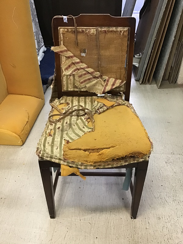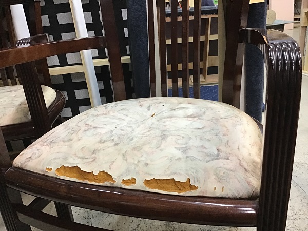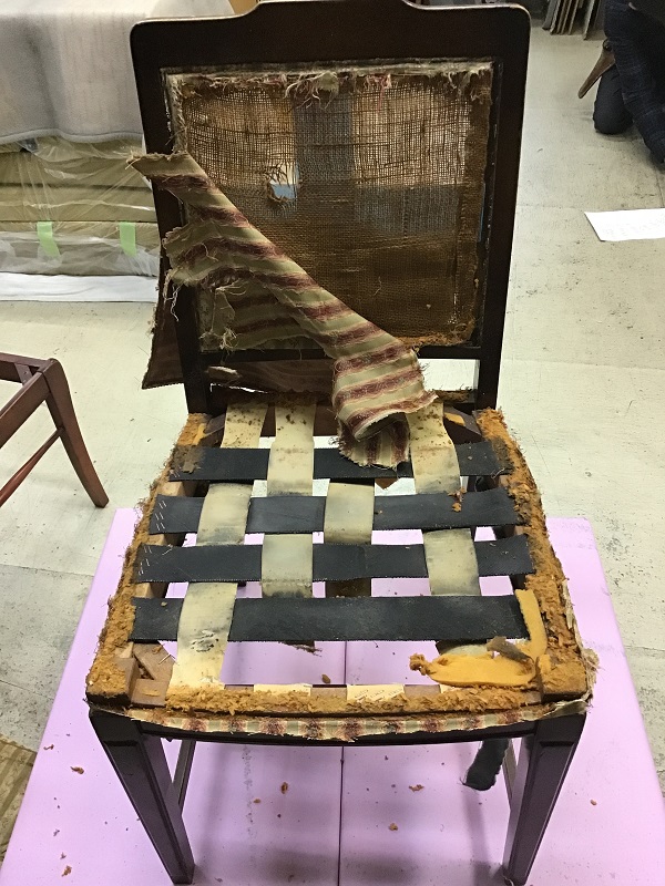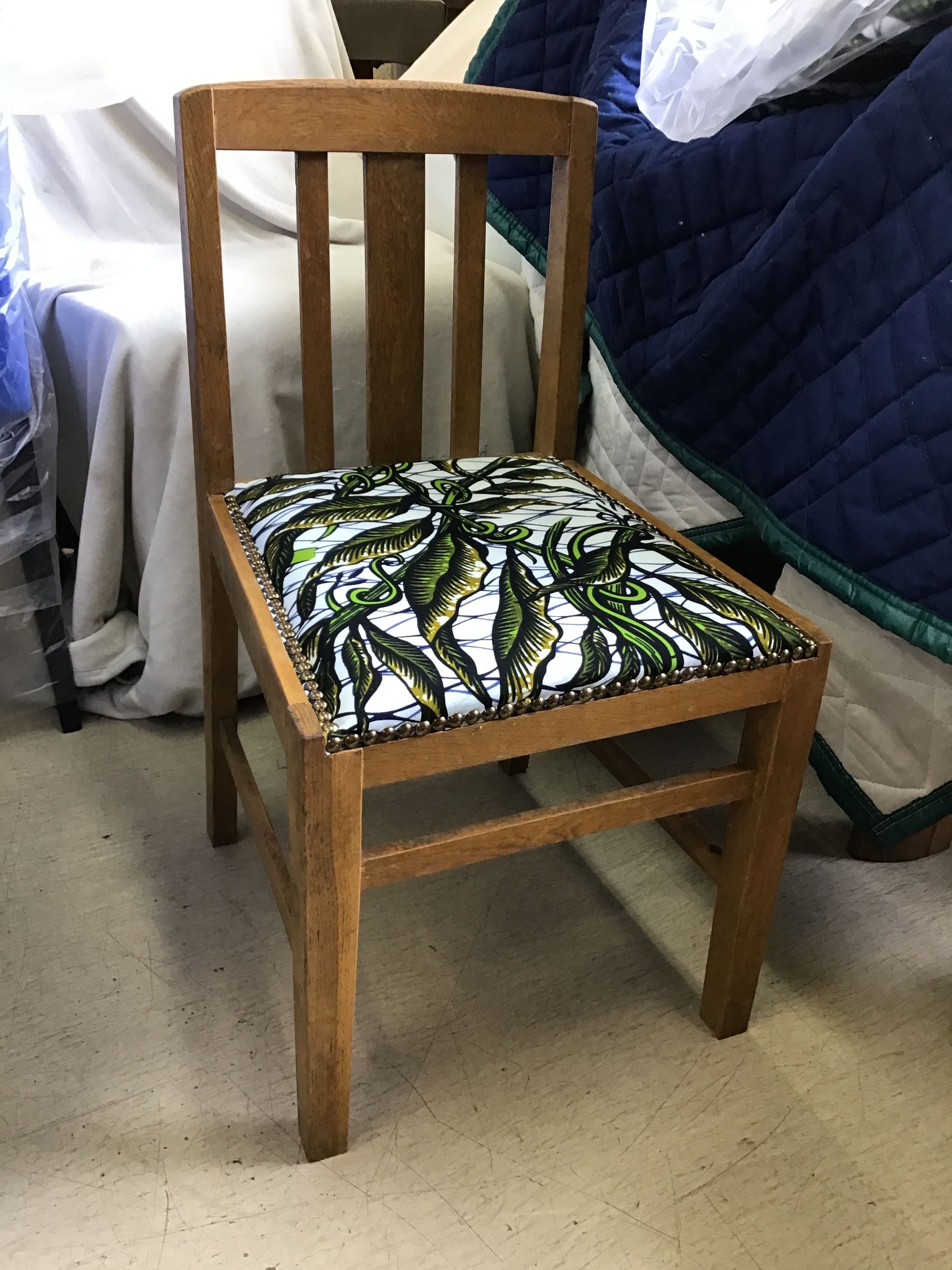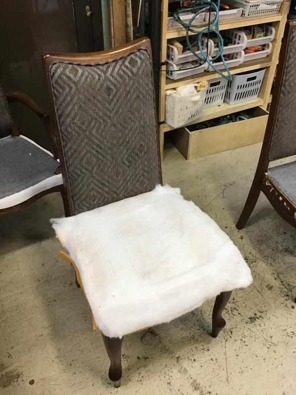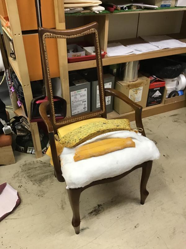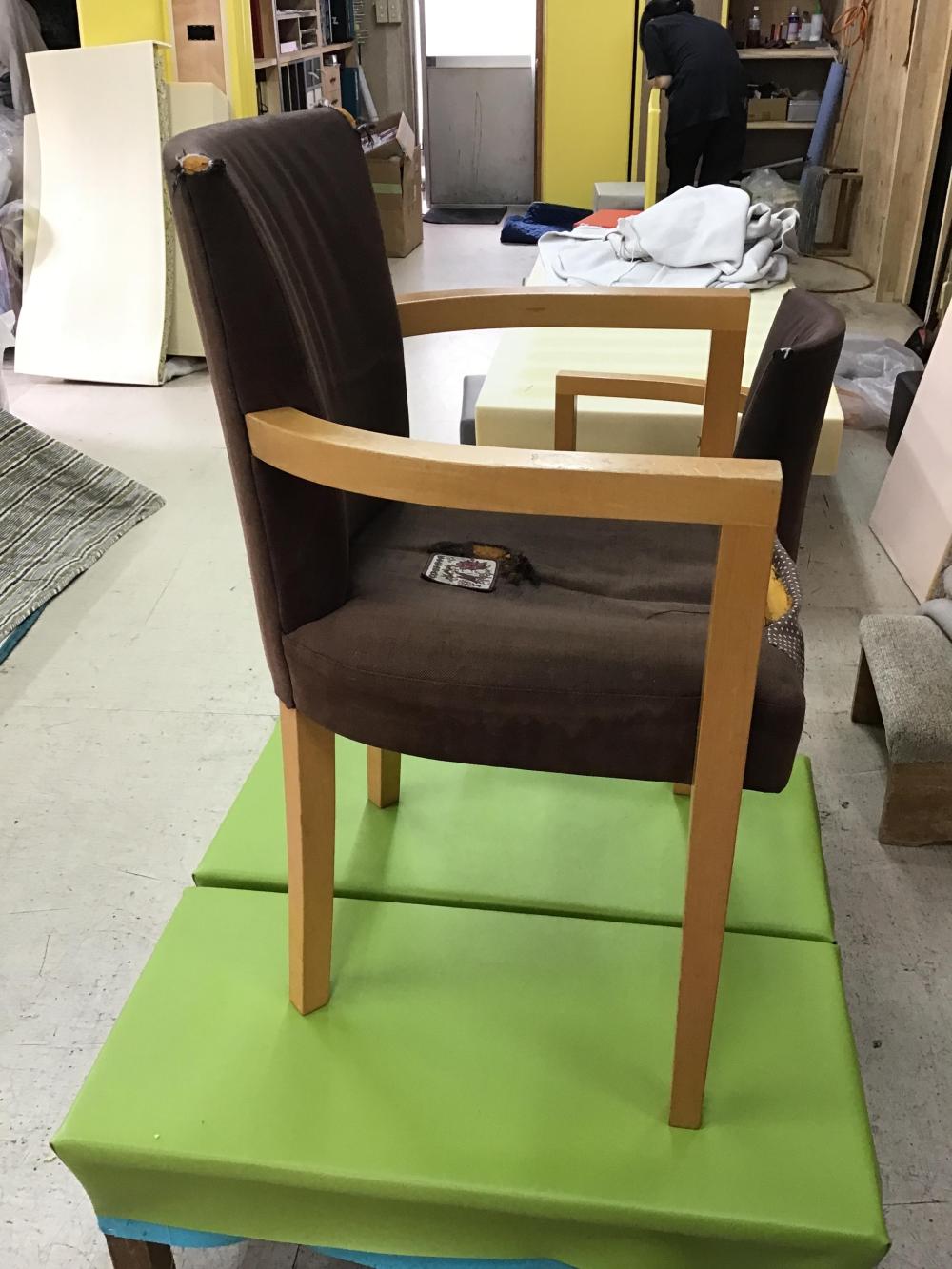 ダイニングチェアの張替と座面のウレタン交換をいたしました。