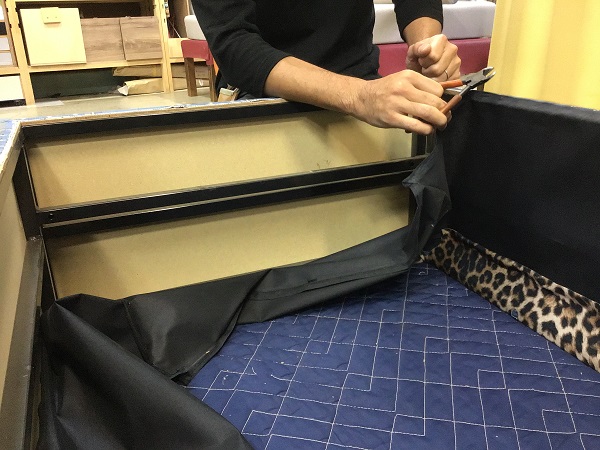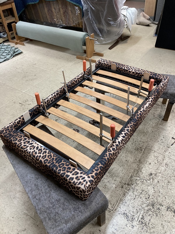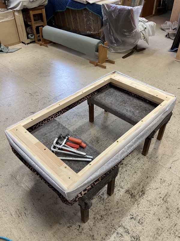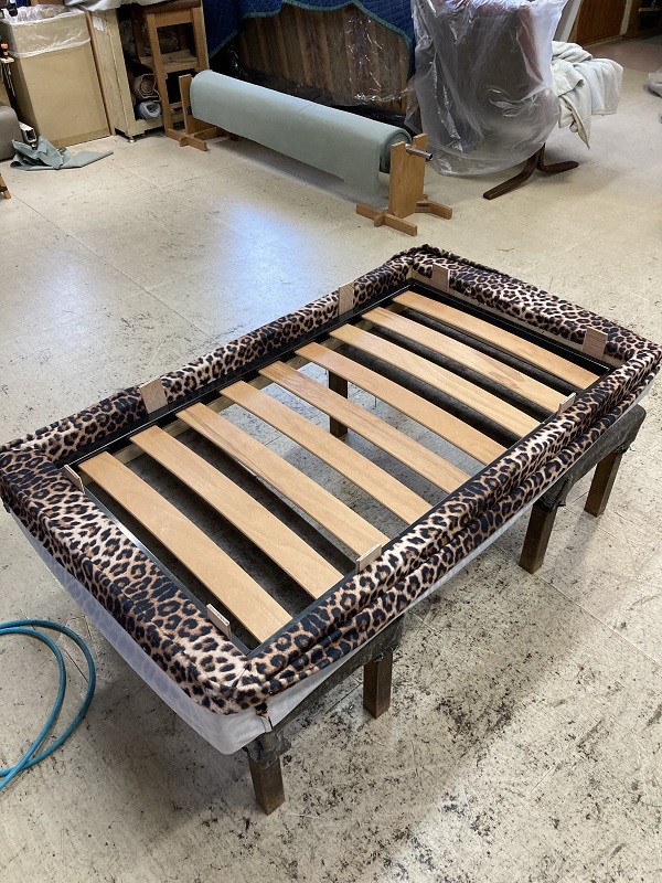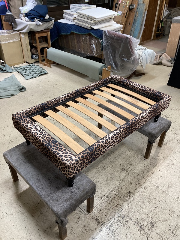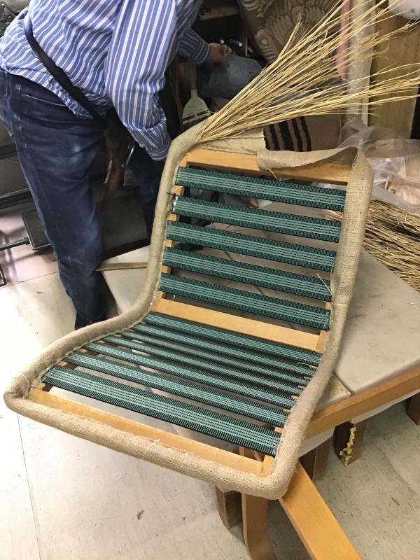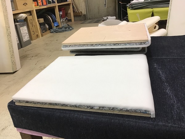 Sバネ受け補修とウレタンの交換をしました。張地はサンゲツ/トライバルメイズ UP112