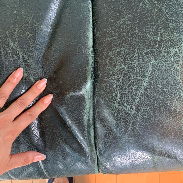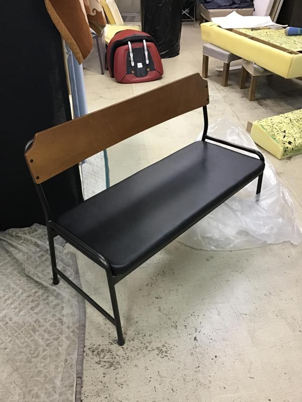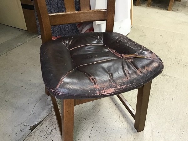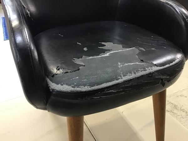 黒のフェイクレザーの表面が割れてきてしまい、座面の張替と