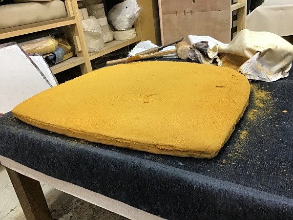 座面のへこみを修復してほしいとご依頼をいただきました。