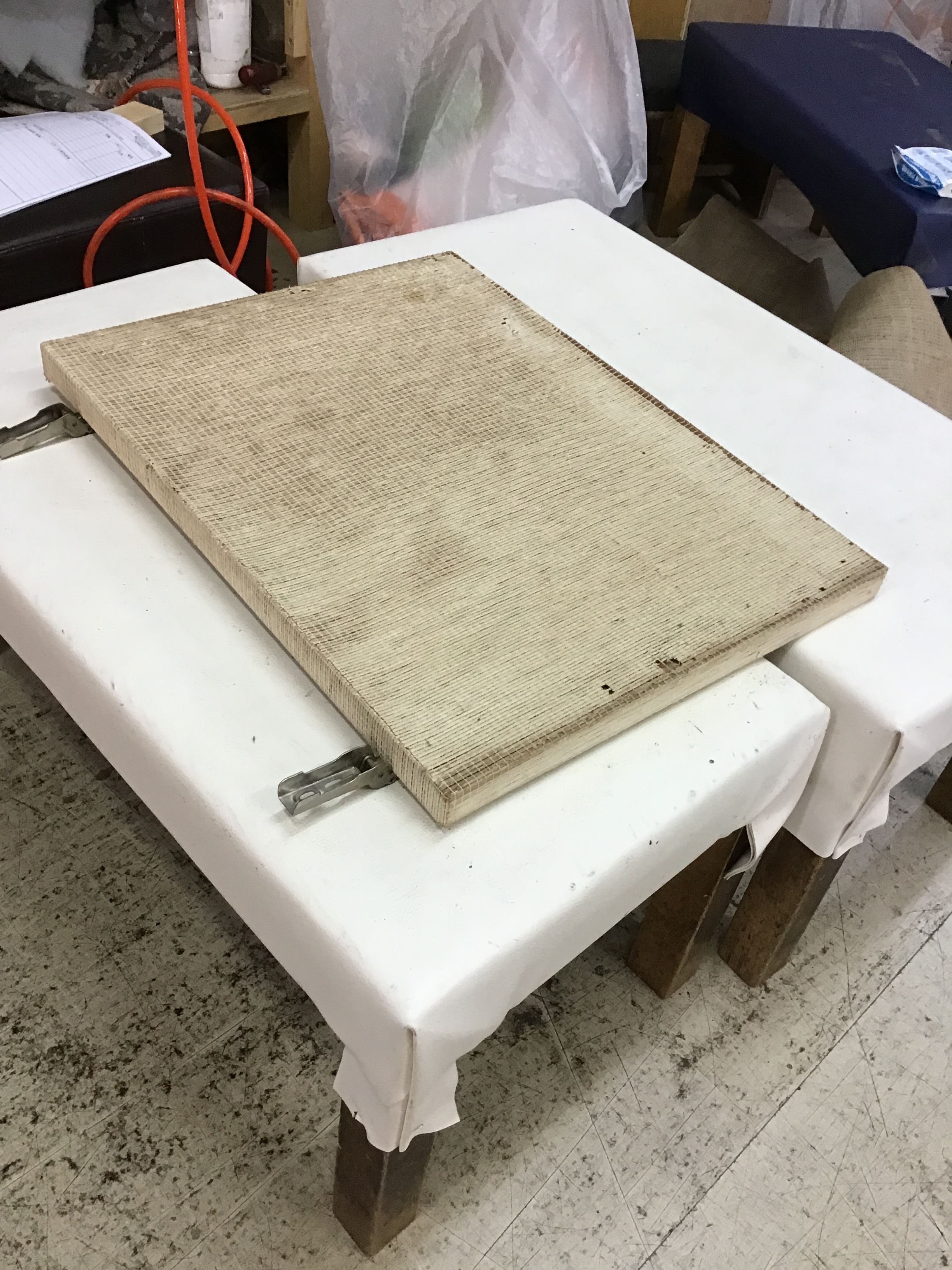 座面の板を交換し張替をしました 弊社は木工場も併設されているので社内で修理を致します