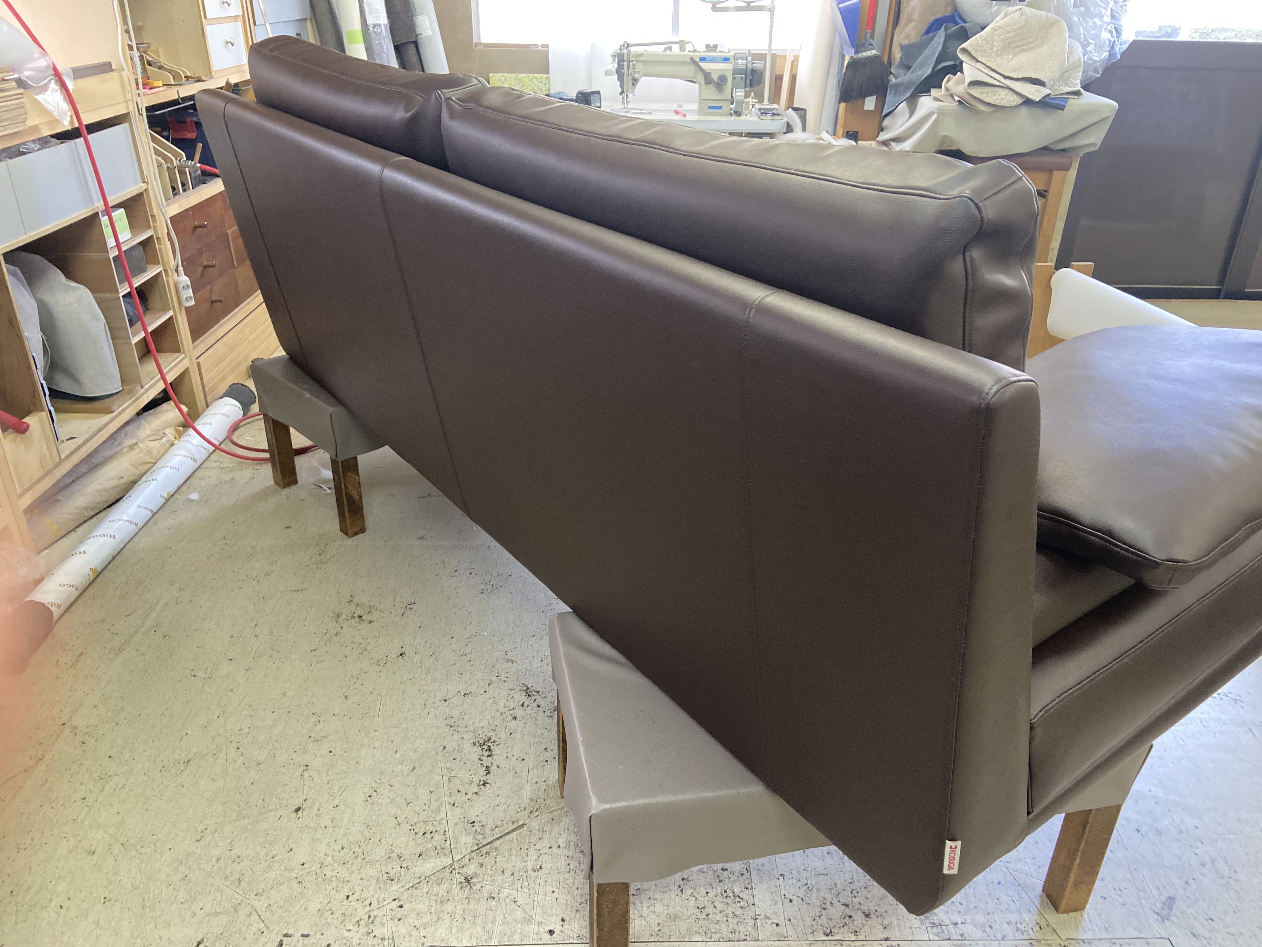 ソファは本革からフェイクレザーへの張替 重厚感のあるリビングになりました