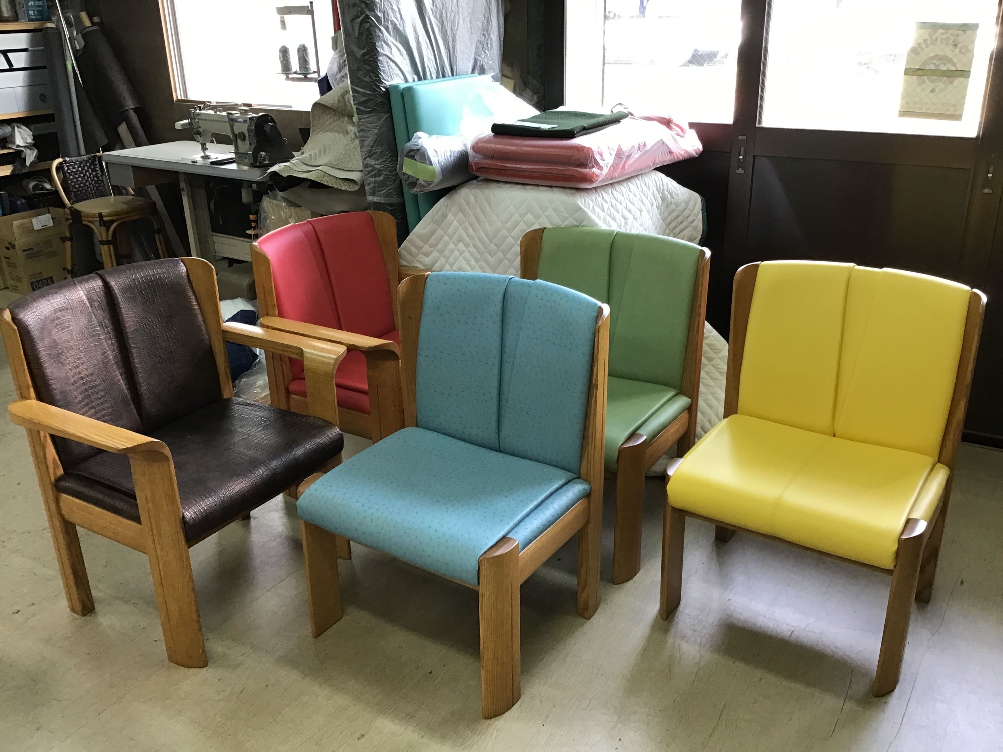大塚家具様からのご購入品 お客様のご要望により5脚を色分けして張替ました